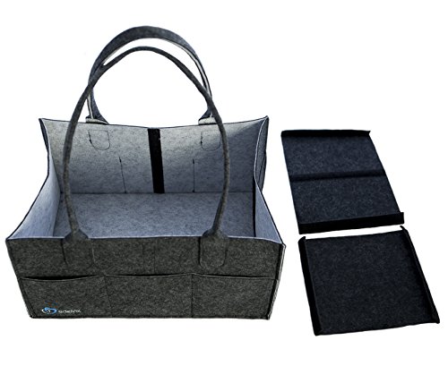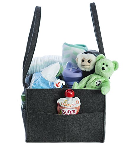LARGER THAN LEADING BRANDS - SPACIOUS DESIGN 15" x 10.5" x 7.5" - Customer reviews for many of our competitors complain that their caddies are too small. We designed ours to be larger than most other brands to fit all diaper sizes and provide extra storage!ULTRAPORTABLE NURSERY STORAGE ORGANIZER FOR BOYS AND GIRLS - Our multi-purpose storage organizer can keep all your baby's essentials in one place! Store diapers, baby wipes, bibs, clothes, toys, bottles, snacks, creams, breast pumps and much more.