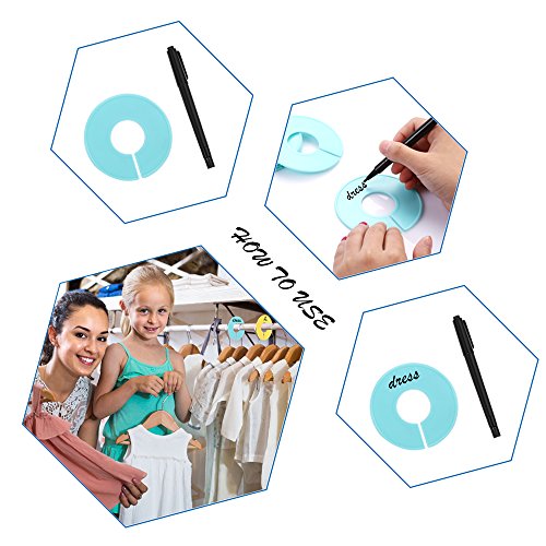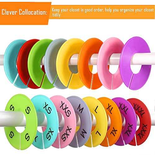 Caydo 64 pieces colored round size dividers closet clothing rack dividers with marker pen. 56 Pieces rack sizes are printed on both sides, suitable for classification of keeping the different size of the clothes closet. 8 pieces blank closet dividers, allowing you to easily write different marker options to suite your needs.
