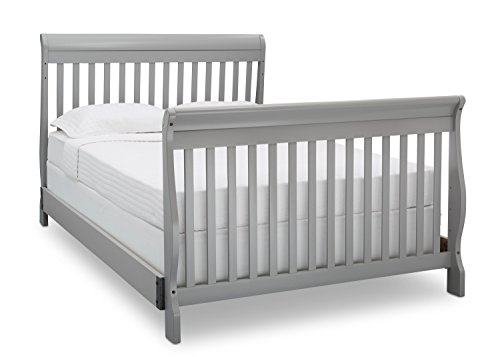 Truly timeless, the Canton 4-in-1 Convertible Crib from Delta Children is embellished with a sleek, sleigh-style headboard, beautifully curved legs, and a versatile design that provides your little one a safe place to sleep, year after year. Built from strong and sturdy wood, this durable baby crib can accommodate all your child's sleeping needs-an adjustable mattress support with three positions allows you to easily lower the mattress as your baby grows, plus it converts to a toddler bed, daybed and full size bed with headboard when your child is ready to make the transition to a big kid bed. The Canton 4-in-1 Convertible Crib from Delta Children includes a Toddler Guardrail and Daybed Rail; Full Size Bed Rails sold separately. Available in multiple finishes.