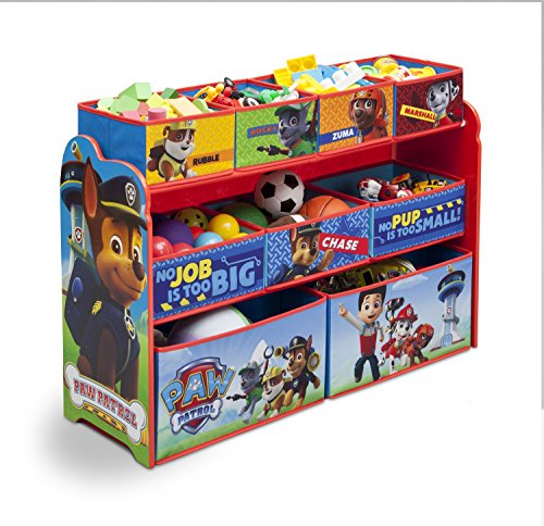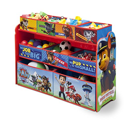 Your kid's favorite canines come to life on this Nick Jr. PAW Patrol Deluxe Multi-Bin Toy Organizer from Delta Children. Featuring nine uniquely sized fabric bins supported by a sturdy frame, it's finished with colorful illustrations of Chase, Rubble, Rocky, Zuma and Marshall.