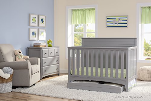 Simple lines and softly curved corners distinguish the profile of the Fancy 4-in-1 Crib from Delta Children. Truly timeless, you'll fall in love with its versatile design over and over again. A one-time investment that will provide a secure sleep space for your baby from birth and on, its versatile design allows you to convert it from a crib to a toddler bed, daybed, and later to a full size bed (Toddler Guardrail and Full Size Bed Rails sold separately).CONVERTIBLE CRIB: Converts from a crib to a toddler bed, daybed and full size bed with headboard (Daybed/Toddler Guardrail Kit #555725 & Full Size Metal Bed Frame #0040 sold separately)