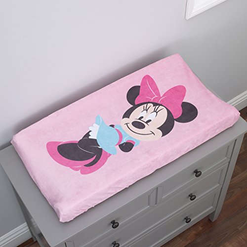 Change your baby in sweet Disney style with the Disney Baby - Minnie Mouse - Pink, Black, and Blue - Velboa - Changing Pad Cover! Cover features a whimsically stylized Minnie Mouse sporting her iconic blue dress and pink hair bow and shoes against a soft pink background. This sweetly designed, super-soft, 100% Velboa cover is designed to fit a standard changing pad cover.Includes 1 super soft velboa changing pad cover