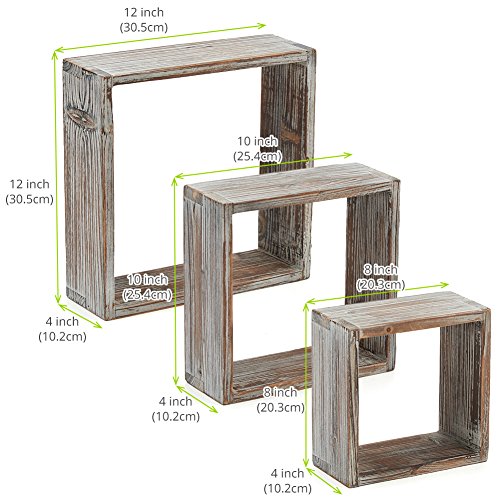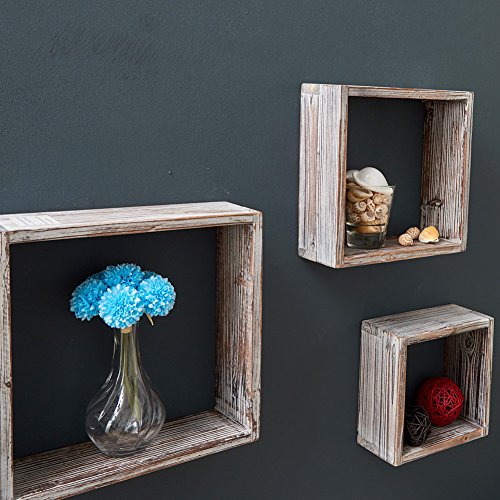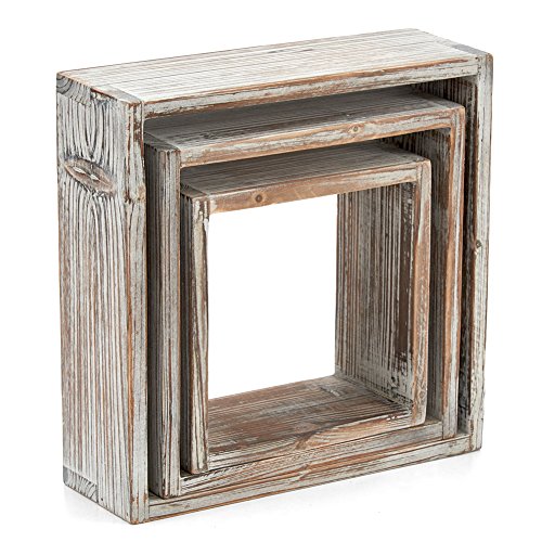 EZOWare Rustic Torched Wood Shelves & Organizers offer a simple and charming way to display, showcase, and organize home decor accents or personal items. The set of 3 shelves come in three different sizes with a shadowbox square style to add depth and draw attention. The rustic torched and distressed wood has an antique neutral color finish that offers complement or contrast to display any item. Versatile wall shelves that can be used in almost any room or living space, keep items displayed with a rustic accent.