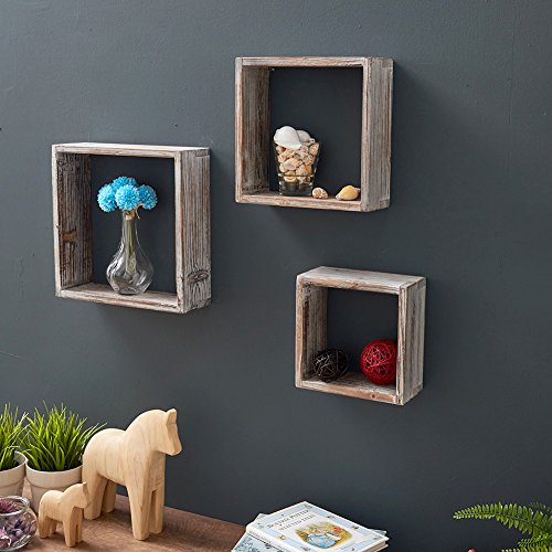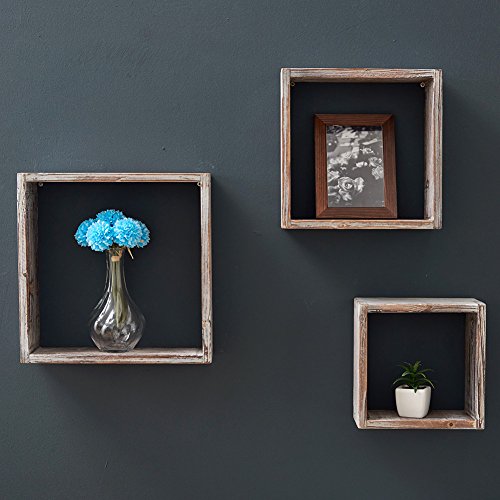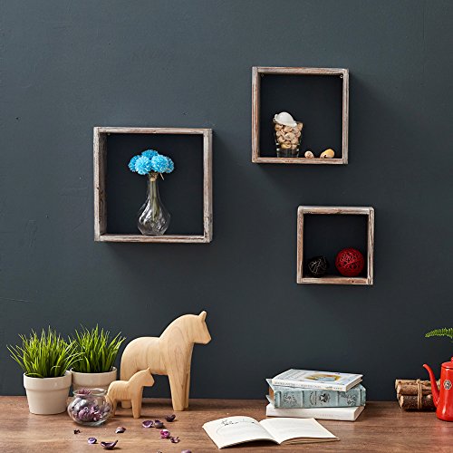 Materials: Wood & Metal.Attractive Home Decor: EZOWare Rustic Square Floating Shelves offer an attractive solution to maximize wall decor. The open shadow box design creates a versatile way to showcase, display, and organize - memorabilia, collectibles, picture frames, home decor knick-knacks, or other items.