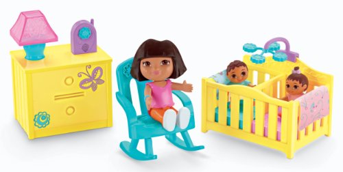 Now you can decorate the Playtime Together Dora & Me Dollhouse! This play pack features phrases and sounds and includes everything you need to help Dora take care of the twins in the nursery!Furniture Pack adds to the Playtime Together Dora and Me Dollhouse