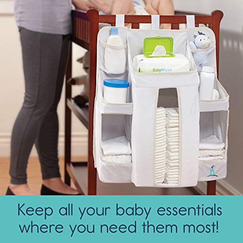 QUICKLY ATTACHES TO CHANGING TABLES, CRIBS OR WALLS - featuring 3 XL buckle straps, our hiccapop organizer provides unmatched versatility for any nursery.