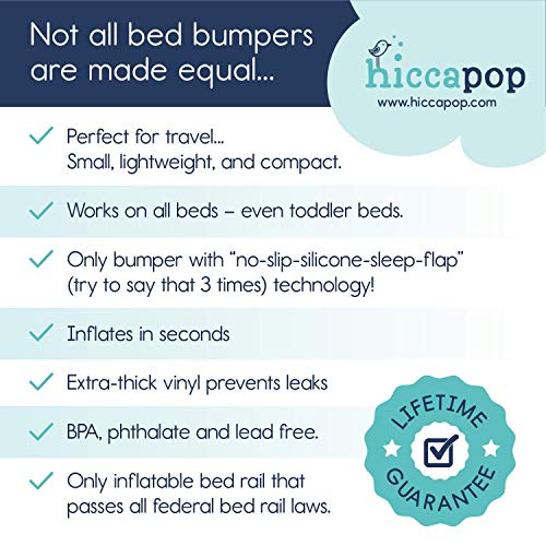 Looking forward to holiday travel, a day trip, or simply visiting friends and family but worried about finding child-friendly sleep accommodations? Have the hotel porta cribs been unsafe or unavailable? The hiccapop inflatable bed bumpers are your perfect answer. They install quickly and securely on any type of bed, and they come with their own carry bag! Wherever you sleep, you will be more peaceful knowing your child will be slumbering comfortably and safely nearby.