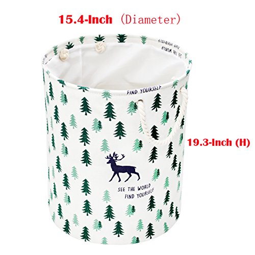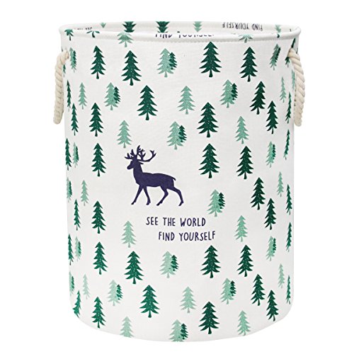This Deer and Trees Pattern Laundry Basket makes a perfect addition to your child's bedroom, closet, or playroom. Great decorative storage for boys' or girls' room. Your little one will love to put away all their toys, books, clothing and more in this spacious and cute storage Basket, and never make room in mess, save time and Convenient. Collapsible and lightweight, When not in use, it can fold down flat and be tucked away. Washable. Perfect for woodland themed nursery storage and cabins.