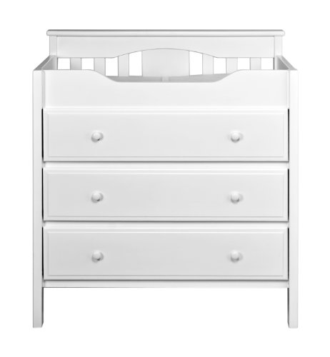 Clean and classic, the Jayden 3 Drawer Changer Dresser is a timeless nursery staple. Featuring a changing station on top (changing pad included), it also has three spacious drawers for all of baby's supplies. When the time comes to transition, the changing pad can be removed and the changing station used to display baby's most beautiful belongings, or to keep frequently-used supplies at hand.Finished in non-toxic multi-step painting process, lead and phthalate safe