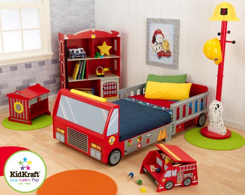 Any young boy will feel like a hero sleeping in our Fire Truck Toddler Cot. This colorful, comfortable cot is sure to brighten any bedroom.Convenient storage compartment