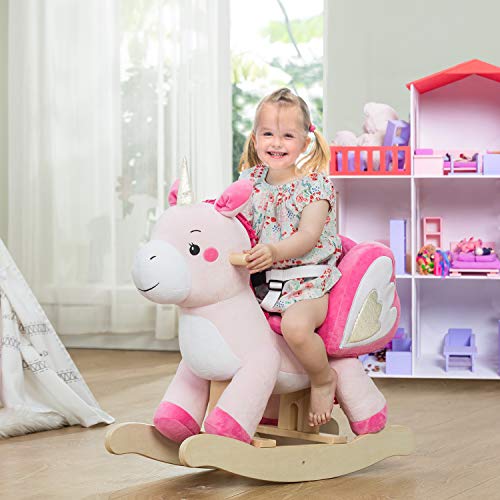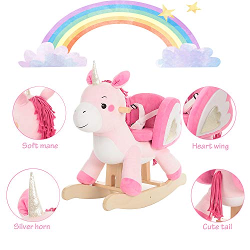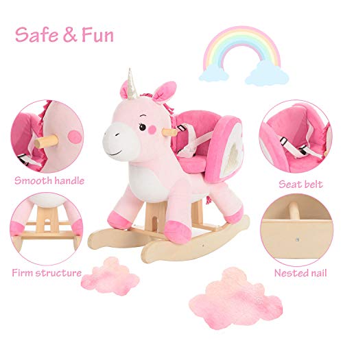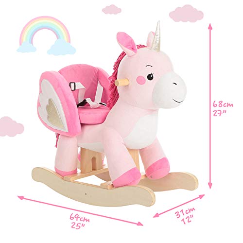 ⛅ 3-Side Seat with Belt - Seat designed for small kids who have less balance capability than older kids, a 3-sides high rack seat guarantees that kids will be always protected while rocking, also the racks are well stuffed with pp. cotton, leaning against it won't hurt a hair, just pure comfort! Also it is a suitable rocking horse chair or toddler rocking horse, a must-have rocking horse 1 year old girl. So the girls ride on, riding unicorn is suitable to you baby dut to it's plush rocker.