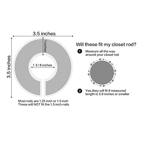 STANDARD DIVIDER SIZE TO FIT ALL CLOSETS-clothing dividers measure 3 1/2 inches with an inside diameter of 1 3/8 inch and a thickness of 1/8 inch. Fits around standard 1.25'' or smaller diameter closet rod.
