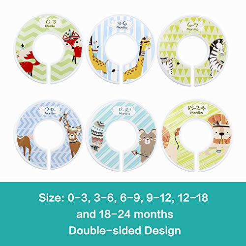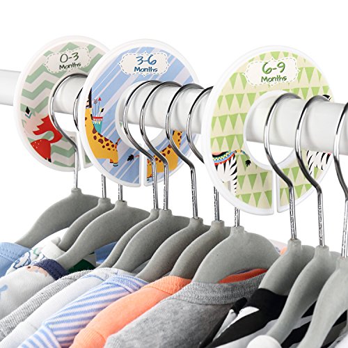 ADORABLE LABELED DIVIDERS-- cute animal prints look great and are divided into 0-3, 3-6, 6-9, 9-12, 12-18 and 18-24 months to help you create organized sections; dividers are durable plastic with a double-sided design that easily surrounds your closet rod.
