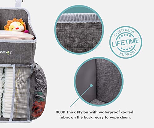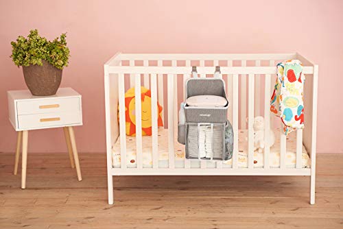 GENEROUSLY SIZED to accommodate diapers, onesies, changing pads, swaddle blankets and more, the Minnebaby Hanging Nursery Organizer is sure to become the most indispensable of crib accessories. Its gender-neutral styling makes it the perfect baby shower gift for all new moms.