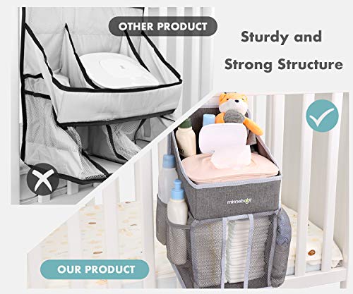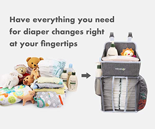 1GIVE YOUR BABY TLC with both hands free when you use the Minnebaby Hanging Diaper Organizer at the crib, playard or changing table. This versatile baby organizer also holds towels, lotion, wipes and clothes within easy reach so you never have to leave your baby's side during diaper changes.