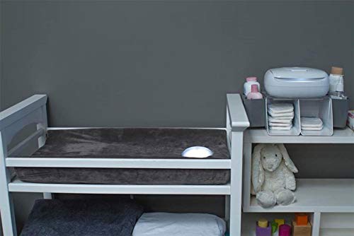 The Prince Lionheart Illumipad Changing Pad + Cover - Grey illuminates just the essential without disruption during pre-nap or nighttime diaper changes. Light has an auto-shutoff timer so you can tap on, tap off or tap and forget it, using the ambient glow as a nightlight while you gently lay Baby down to sleep. The cushiony changing pad comes with a plush cover with a waterproof light shield that protects the light from wayward wetness. Cover is machine washable and dryer friendly. IllumiPAD fits all changing tables, combo dressers and all babies and toddlers up to 30lbs. Like all Prince Lionheart nursery essentials, the IllumiPAD is designed with safety in mind so you can keep one hand on your baby: straps and contoured sides for Baby and a grippy bottom to prevent changing pad from slipping.LED LIGHT ILLUMINATES THE DIAPERING AREA WITHOUT DISTURBING BABY