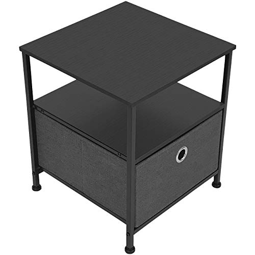 1-DRAWER NIGHTSTAND (BLACK/CHARCOAL) - Style meets function with our lightweight accent table, complete with tabletop, middle shelf, and pull-out drawer for additional storage - Pairs beautifully with the Sorbus Foldable Furniture Collection