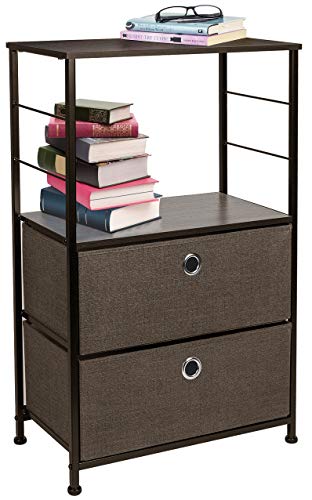 This charming accent table features a tabletop surface, middle shelf, and 2 pull-out drawers for additional storage. The thoughtful design is compact for small living spaces and works equally well by the bed or sofa. Store anything from books, reading glasses, alarm clocks, and other bedside necessities. The lightweight frame makes this unit easy to transport around the home and when not in use, simply fold the fabric drawer flat for storage. Use alone as a single nightstand or pair with any drawer configuration from the Sorbus Furniture Collection. With everything you need right by your side, getting organized has never looked better!
