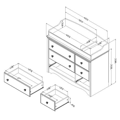 Shop with confidence knowing that we proudly stand behind this Changing Table with a full 5-year limited warranty. Assembly is required. Changing pad and accessories are not included. Meets or exceeds all North American safety standards. Ships in a heavy box, make sure to have a friend with you. Packaging tested and certified to reduce the risk of damage during shipment. We recommend 2 people to assemble. Tools are not included. Made in North America with non-toxic laminated particleboard. South Shore Furniture's support team is available 7 days a week if you have any questions.