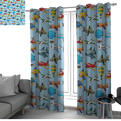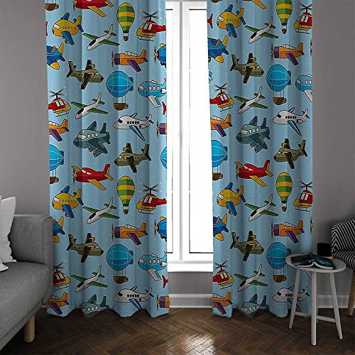 ✅ PATTERN DESCRIPTION:Kids,Cute Airplane Helicopter Zeppelin Air Balloon Military and Toy Flights Nursery Pattern,Multi✅ ELEGANT DESIGN: 2 panels per package. Each Blackout Curtain measures 54" wide x 84" long.Please allow 1-2 cm error due to manual measurement and the picture may not reflect the actual color as different monitor display and light effect.