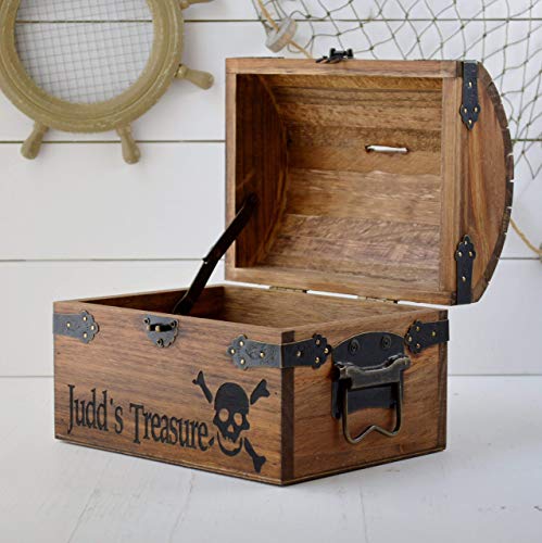 PERSONALIZED BOX Our customized treasure is made from solid wood with metal accents, stained and personalized to your requests. We can engrave your child's name on the front or we can customize it with your choice of wording! Each solid wood box is stained and engraved with your requested name SIZE 7"x6"x5" DETAILS Solid wood construction and beautifully stained and engraved. PERSONALIZATION Customize this box with any name you'd like. GIFT IDEA This makes a great gift for the new baby or special kid!